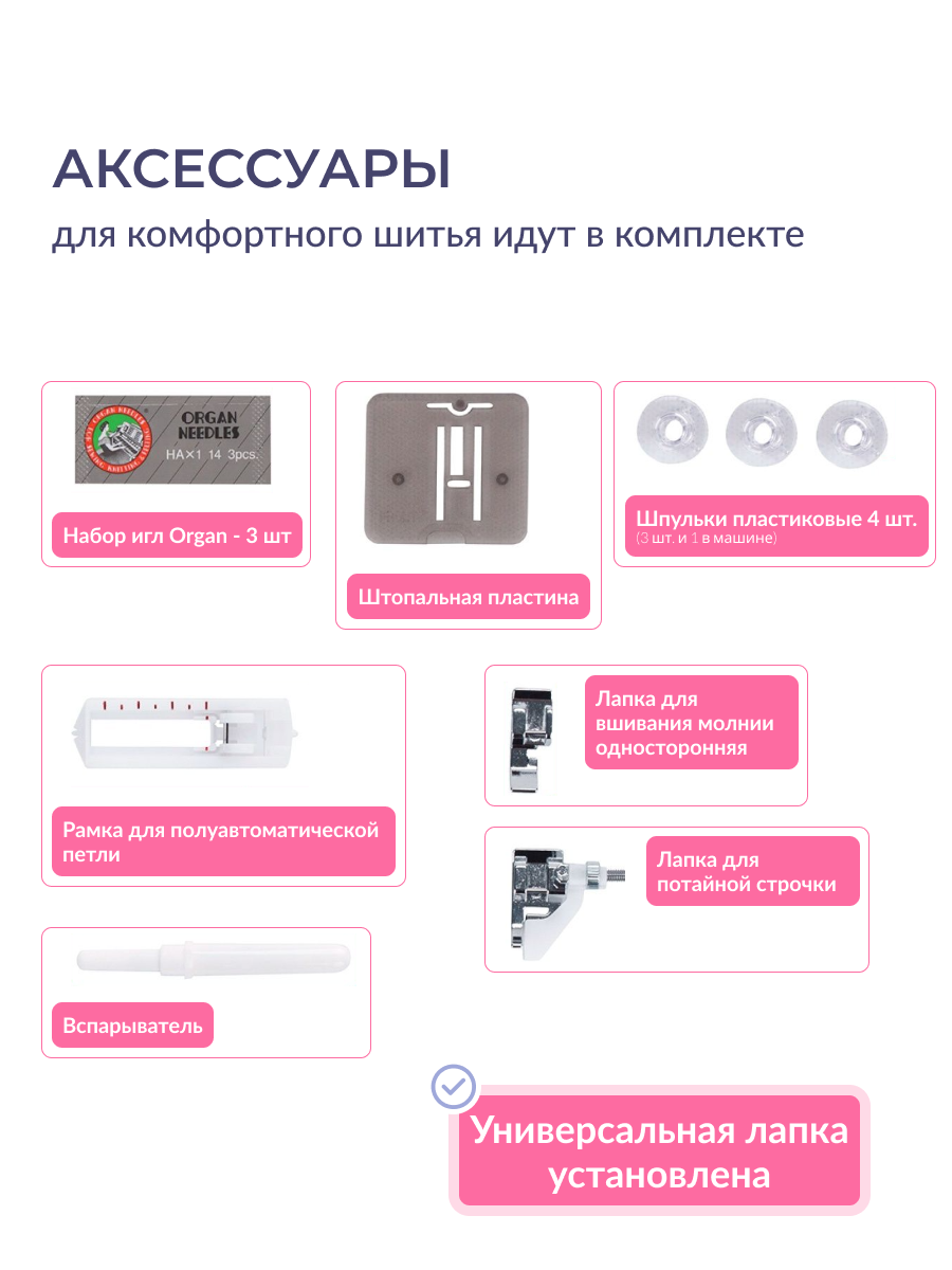 Janome 2020 - проста в обращении и надежная в управлении. Швейная машина выполняет 15 операций. Петля в полуавтоматическом режиме. Машина для всех видов тканей.
